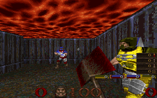 You can get to High Ping Hell in many ways. I usually arrive there from DM4 (The Bad Place). I am fighting through the level and need armor and firepower. I run to the top platform and jump down to grab the red armor and rocket launcher. I step through the slipgate expecting to spawn on the lower level platform and then go right or left at the T crossing. Instead, what happens is that due to network lag (and packet loss or ping timeouts), my first recollection upon exiting the slipgate is that of being consumed by lava. My movement was only out of my control for a second, but instead of turning at the T crossing I have blindly run straight off the platform edge and plunged into a sea of fire. I am engulfed in extreme heat and must listen to my own screams of anguish until I expire.
